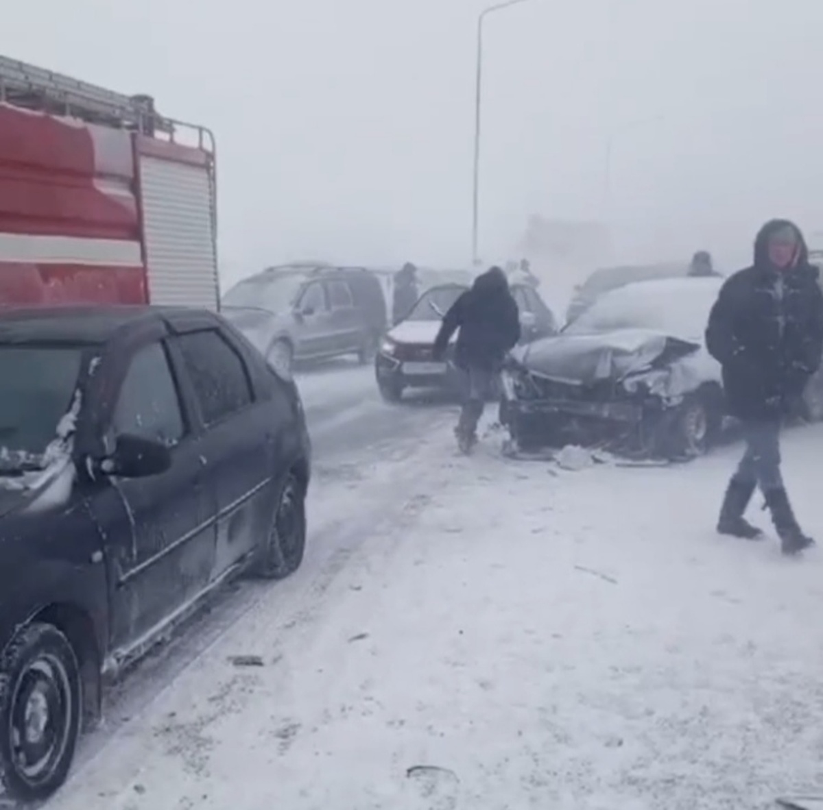По информации, полученной от МЧС по Республике Башкортостан, инцидент произошёл недалеко от населённого пункта Новый Кальчир. В результате столкновения пострадали три человека, в том числе один ребёнок в возрасте восьми лет. Все пострадавшие были доставлены в медицинское учреждение. На месте происшествия приюыли медики, сотрудники Госавтоинспекции, а также работает передвижной пункт обогрева на базе автомобиля «КАМАЗ» со снегоходом. Движение на участке аварии организовано по одной полосе. В ГИБДД Республики Башкортостан также сообщили, что на протяжении одного километра на 74-м километре автодороги Уфа — Оренбург произошло четыре аварии с участием 20 транспортных средств, двигавшихся в попутном направлении. Движение в сторону Уфы затруднено.