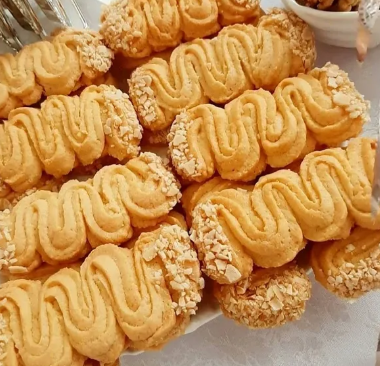 Для этого край готового печенья окунуть в мёд или варенье (карамель) и затем посыпать орешками.