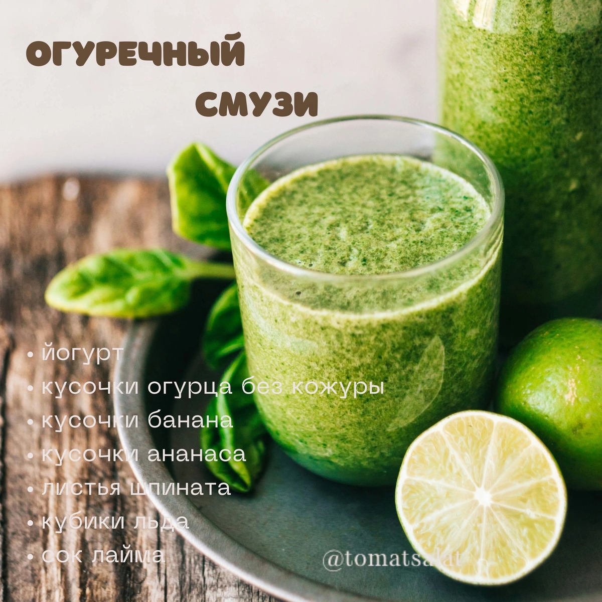 Что понадобится? Огурец, банан, ананас, листья шпината, йогурт, несколько кубиков льда и сок лайма (лимона).