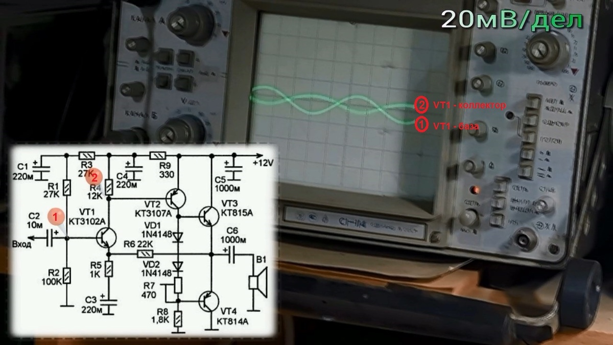 И начнём мы пожалуй с вот этого занимательного факта о первом каскаде усилителя на транзисторе VT1: