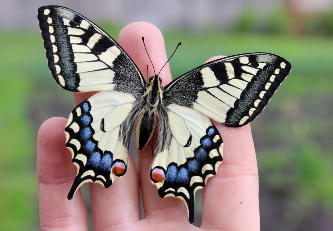 С высоты полёта бабочки было неясно, спит ли человек или просто пребывает в глубоких думах, но глаза у него были закрыты. Бабочку разбирало любопытство, и, повинуясь своей любознательности, она, аккуратно спланировав, опустилась ему на нос. От лёгкого прикосновения тончайших ножек я открыл глаза и сфокусировал зрение на прекрасном создании. Бабочка немного опешила от движения открывающихся век, отпрянула, но не улетела. Мне показалось, что она заглядывает прямо в мою душу через мои открытые глаза. Её крылья ни на секунду не оставались без движения, попеременно то складываясь, то раскрываясь. Когда она расправляла крылья, по яркому цвету и рисунку я узнал в ней махаона - красивую дневную бабочку. Об этом «говорили» и два хвостика на концах крылышек. Я старался громко не дышать и не шевелиться, чтобы не спугнуть бабочку - это такая удача общаться с махаоном на таком близком расстоянии! Но эти насекомые по природе непоседы, им постоянно нужно быть в движении. Очередной раз взмахнув широки