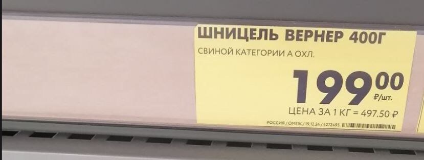 Купили свиной шницель в магазине Чижик. Цена 199 руб. за 400 гр. (по состоянию на 02/02/25), рассмотрим продукт по нескольким параметрам и приготовим отбивные: В лоточке три кусочка. Жидкости нет, в лоточке 2 впитывающие прокладки. Цвет мясаГото приятный, без запаха. Вес немного не дотягивает (на 10 гр) до 400 гр. Лишнего жира нет. Разрезаны боле менее ровно. Изготовитель АО "Останкинский мясоперерабатывающий комбинат". Вся информация о продукте есть на этикетке. Замариновала мясо, в соевом соусе и небольшом количестве горчицы и майонезе по (1/2 ч.л.) примерно на 30 минут. Не отбивала. Пожарила на среднем огне до готовности. Вот такая красота получилась: Немного плотноваты, но вкусные. Хватило на ужин и мужу на завтрак. Можно брать. Всегда есть в магазине, сроки хорошие 3-4 дня от даты изготовления! Благодаря жиру и высокому содержанию белка свинина хорошо насыщает и бывает незаменима в холодное время года. Белки свинины содержат незаменимые аминокислоты, поэтому мясо рекомендуется