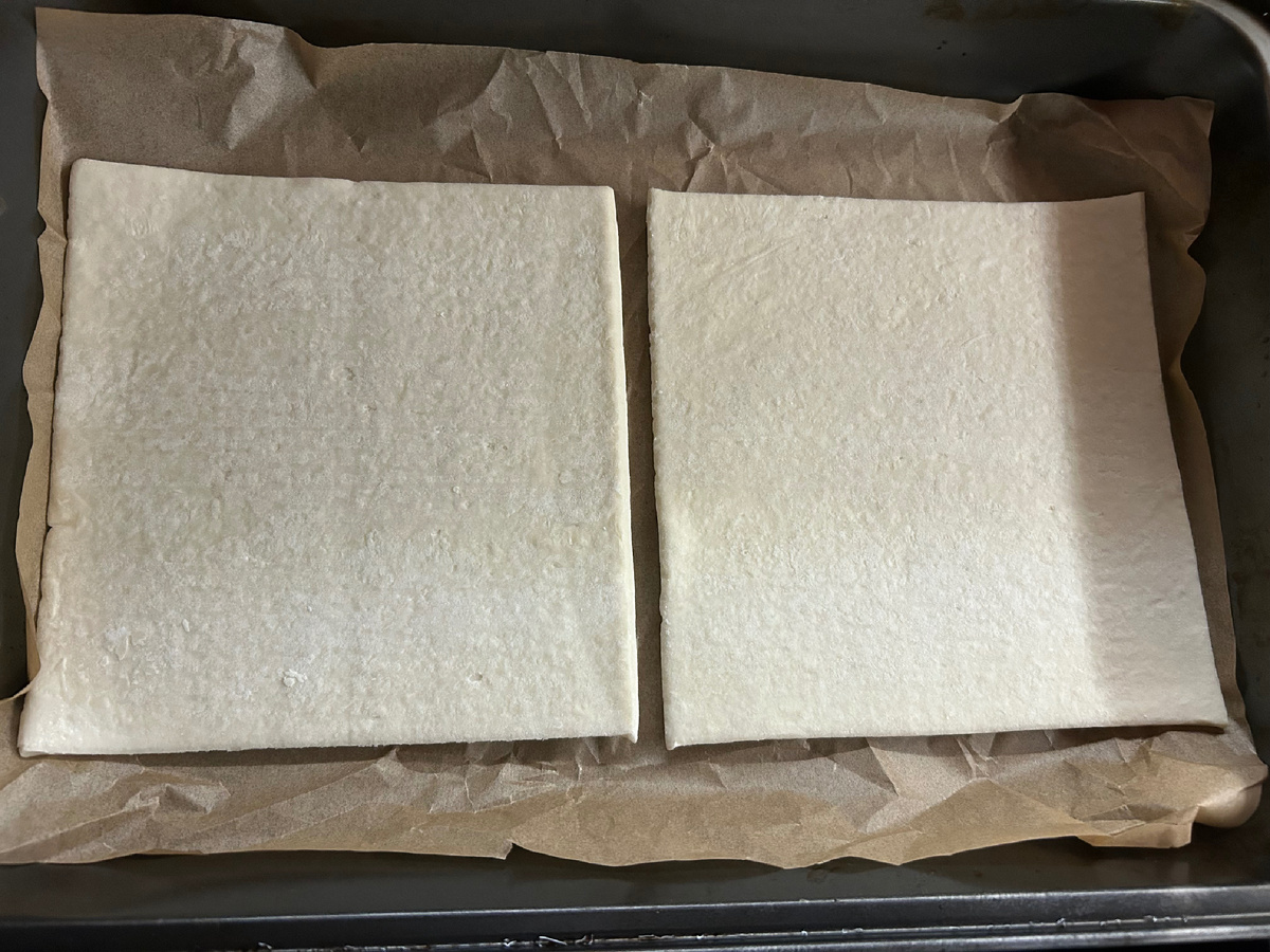 Очень вкусный десерт и безумно простой в приготовлении. Рабочее время ~ 10 минут, а общее 30. Берём уже готовое слоёное бездрожжевое тесто и размораживаем при комнатной температуре. Как только тесто уже готово к использованию, выкладываем его на противень (оба пласта). Если хотите, чтобы был небольшой тортик, можно использовать одну пачку, состоящую из двух пластов, а если хотите тортик побольше, можно купить две пачки или более. Отправляем тесто румяниться в духовку примерно на 20 минут при температуре 180 градусов. Пока тесто греется, можно сделать крем, которым будем пропитывать тортик. Я делаю его из сгущёнки, сливочного масла и молока. Кто любит послаще, молоко можно не добавлять. Для меня торт получается слишком приторным. Смешиваем все ингредиенты и перемешиваем. Я иногда это делаю с помощью блендера, а иногда вручную при помощи венчика. Получается всегда один и тот же однородный крем, разница только во времени (блендером быстрее можно добиться желаемой консистенци
