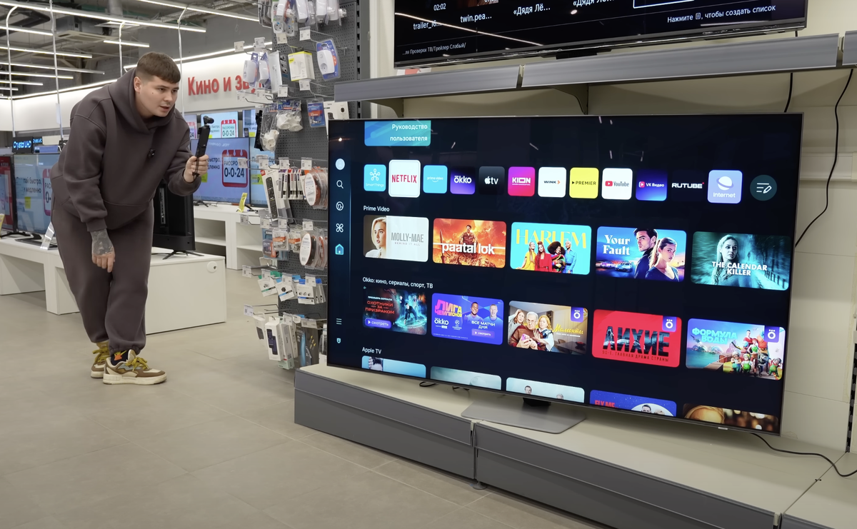 Доступны все популярные российские сервисы — Кинопоиск, VK Видео, PREMIER. Интерфейс довольно удобный и быстрый, хотя и не такой гибкий, как Google TV. Отдельно отмечу возможность подключения сразу двух пар Bluetooth-наушников — удобная функция. Правда, торренты онлайн и YouTube в России работать не будут — VPN и Torrserve на Tizen не установить. Но в целом система простая и понятная в использовании.