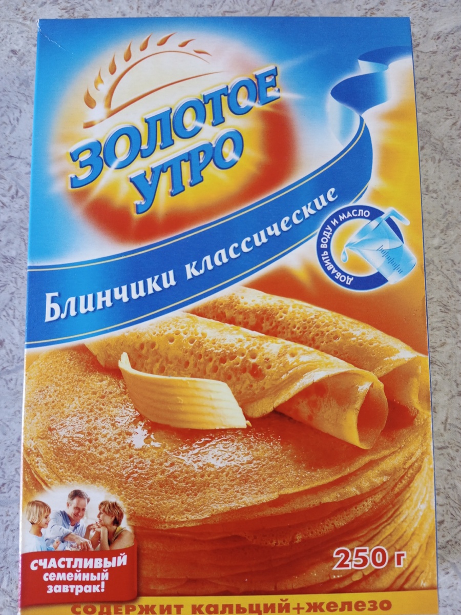 Понедельник день тяжёлый, так говорят в народе и поэтому можно для него выбрать простой вариант готовки. В магазине мне на глаза попалась смесь для приготовления блинчиков «Золотое утро», по совершенно смешной