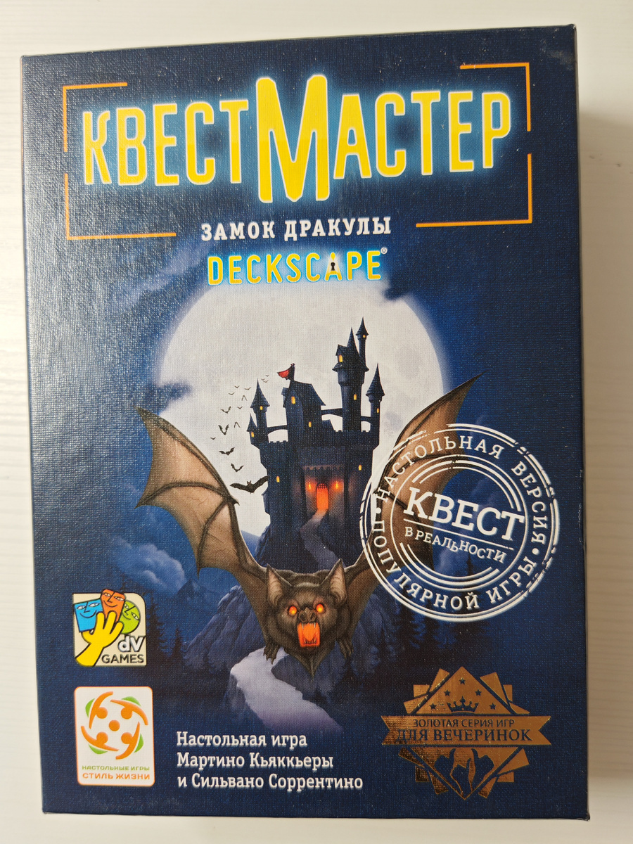 Издательство: Стиль жизни Кол-во игроков: 1-6 Возраст: 12+ Время: 60 мин Состав игры: колода из 64 карт, 1 загадочная книга Жанр: Квест в коробке Все игры серии - это настольные квесты. За определенное время игрокам нужно справиться с рядом головоломок. Найденная отгадка может служить подсказкой для следующей загадки. Задания-головоломки изображены на картах. Открывать их нужно в строго определенной последовательности, а переворачивать, только если есть соответствующие указания или вы уверены в ответе на загадку. Это девятая и, на мой взгляд, самая неудачная игра в серии. Некоторые загадки показались странными. Игру прошли, решив верно последнюю загадку, вампирами не стали, но восторга от коробки не было. Дочь очень хотела поскорее начать проходить эту игру: вампиры, Дракула, Трансильвания. Но игра и ей не понравилась.
