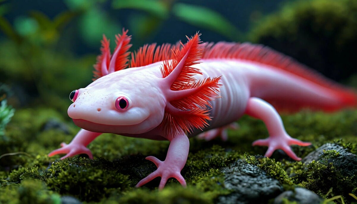 - Описание: Аксолотль (Ambystoma mexicanum) — это неотеническая личинка саламандры, которая обитает в озерах Сочимилько и Чалько в Мексике. Он известен своей способностью оставаться в личиночной стадии всю жизнь, не превращаясь во взрослую особь.