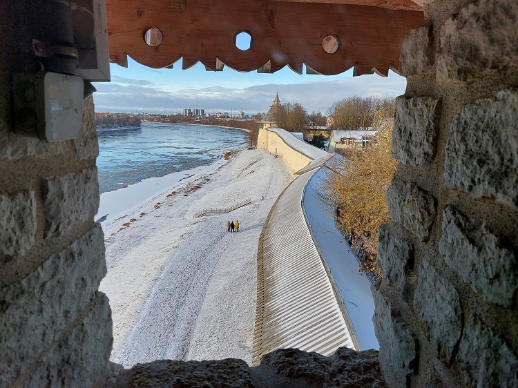 Чудесный зимний день. Яркое солнце, голубое небо, легкий морозец, незамутненный грязью снег — самая подходящая погода для любования псковскими видами.