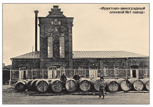 В 1874 году он регистрирует в своем особняке «Фруктово-виноградный огневой №1 завод» эриванской I гильдии купца Нерсеса Агаджановича Таирова в городе Эривани на Шоссейной улице в собственном доме (именно слово «огневой» дает юридическое и фактическое право на перегонку виноградного вина на коньячный спирт). На привезенных из Франции (департамент Шаранта) двух огневых аппаратах объемом по 80 ведер он в том же году многократно выкуривает из белого вина коньячный спирт и заливает его в дубовые бочки емкостью 20–30 ведер (русское «казенное ведро» – 12,3 литра).