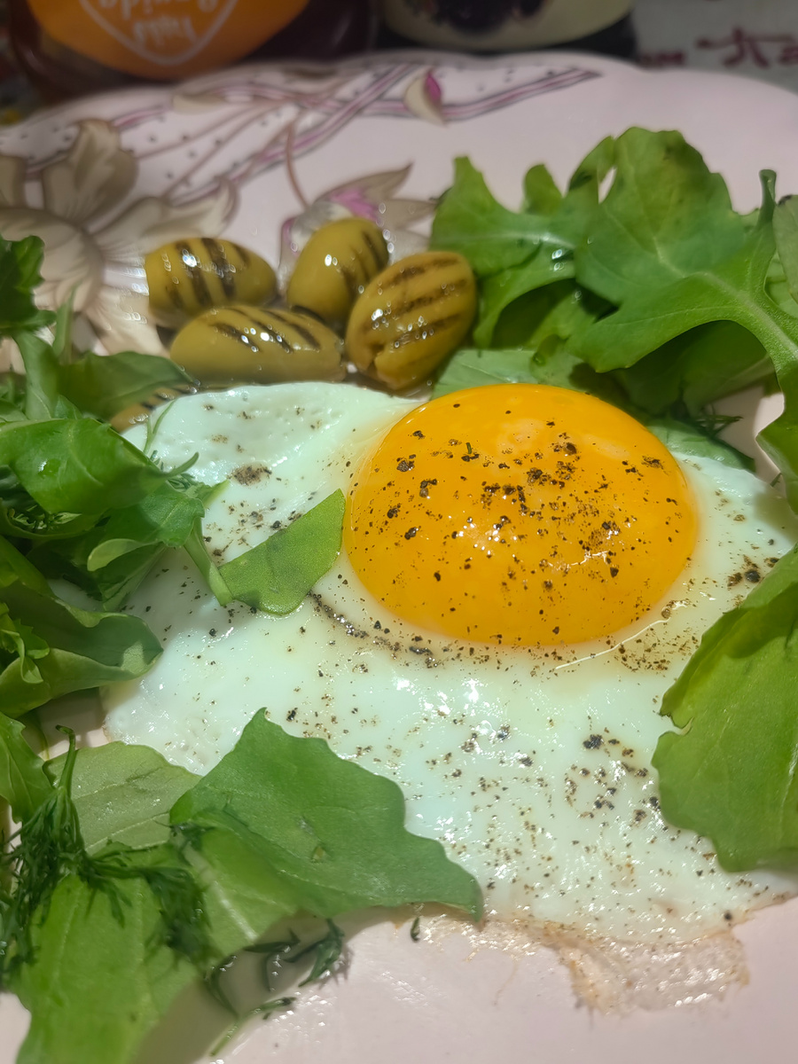 На завтрак у меня была несколько раз яичница и остатки оливок.