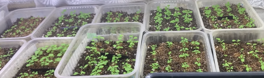 - Поворачивайте ёмкости, чтобы ростки не тянулись в одну сторону.