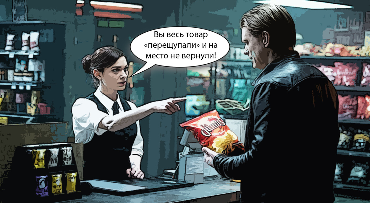 - Взять сок с полки, положить, передумать и поставить на другую полку. Там тоже сок, да. Но в 2 раза дешевле. Или дороже. На кассе следующий покупатель устроит скандал, потому что ценник неверный.