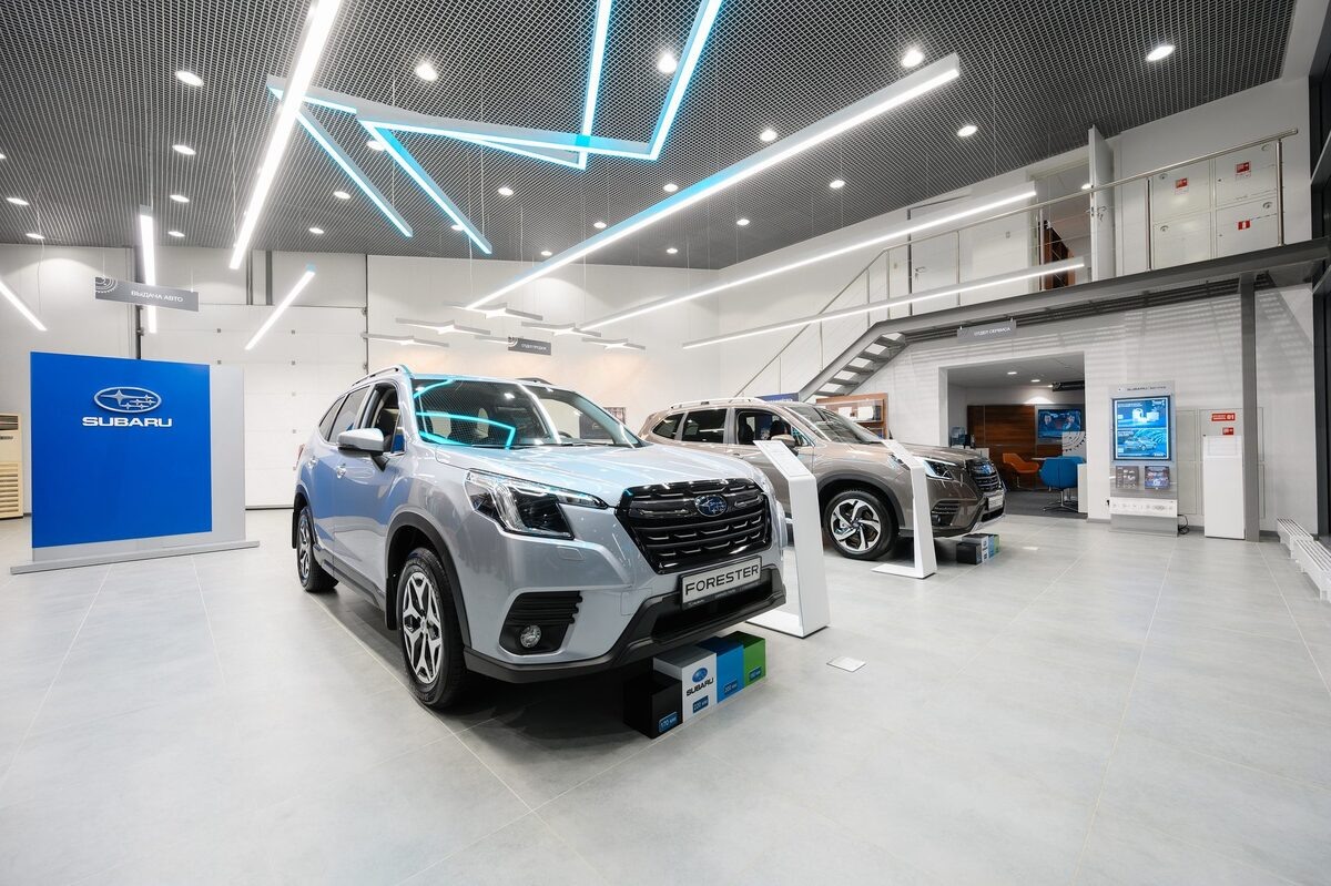 Обновленный автосалон размещается на более скромных площадях. Шоурум занимает около 200 м2, и в нем, в частности, представлен автомобиль Subaru Forester японского производства. Дилер дает на автомобиль гарантию как по сроку эксплуатации, так и по пробегу.