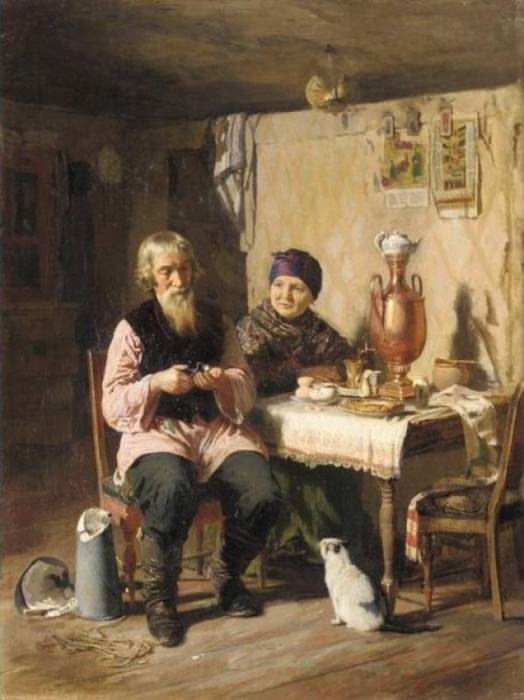 Когда день подходил к концу, наступало время теплых семейных посиделок. В центре стола пыхтел самовар, наполняя дом ароматом душистого чая с травами и ягодами.
