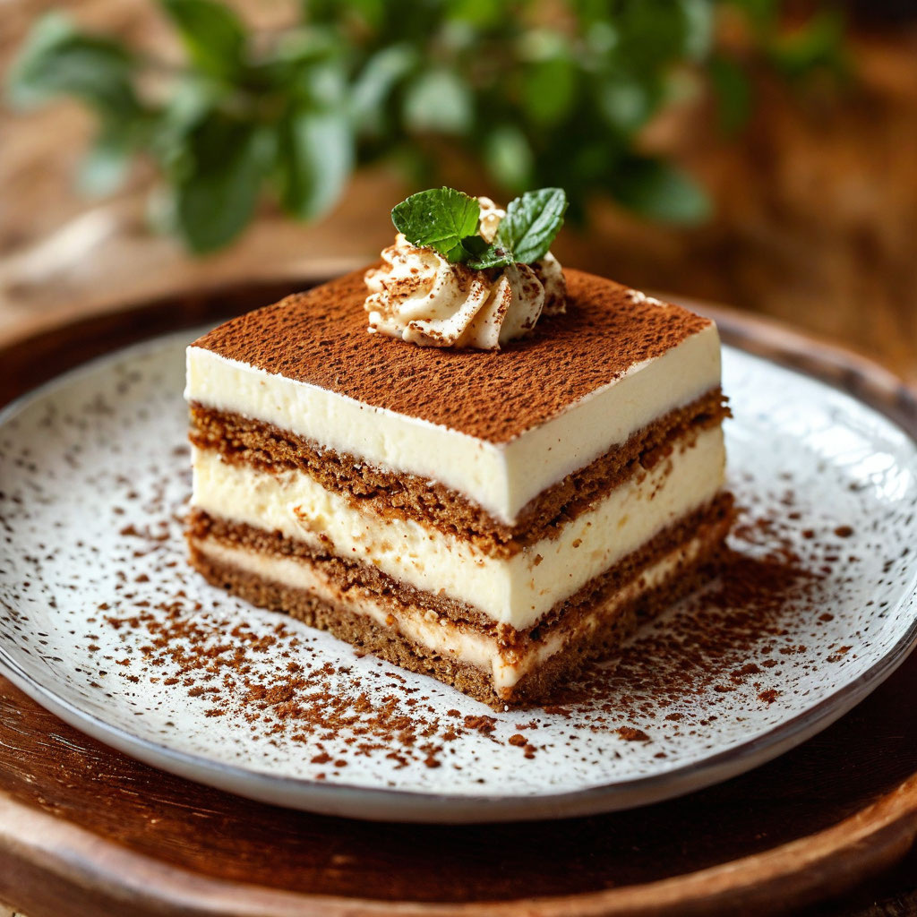 - Подача:Перед подачей посыпьте тирамису какао-порошком через сито.