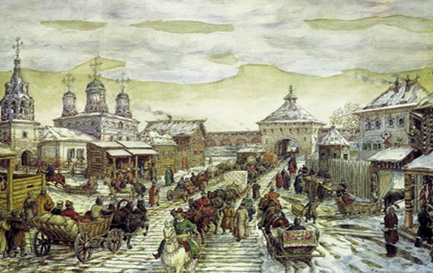 Мясницкие ворота Белого города в XVII веке (ныне Тургеневская площадь). Художник А. Васнецов.