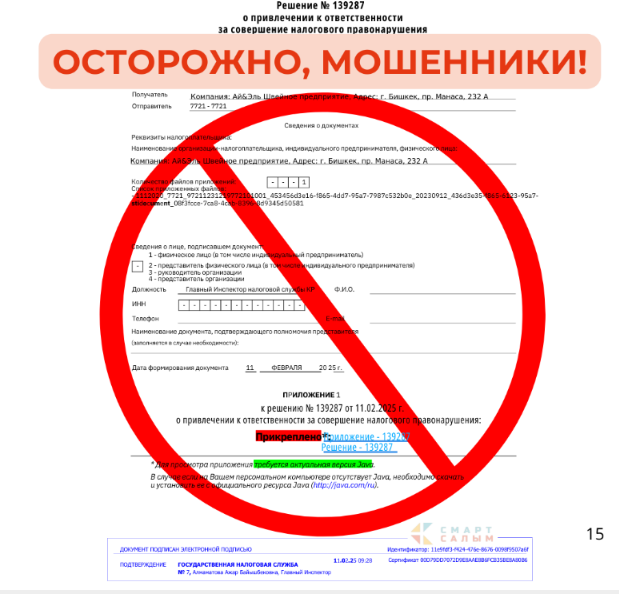 🛡️ Салык кызматы бардык салык төлөөчүлөрдү сергек болууга жана алдамчылардын тузагына түшүп калбоо үчүн этият болууга чакырат.