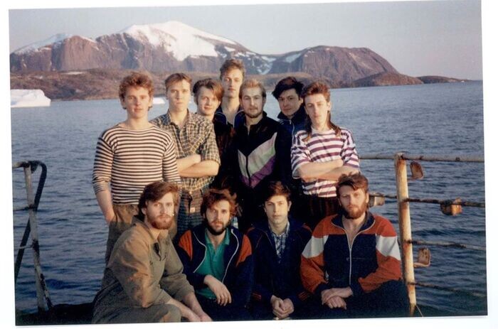 Какое-то время мы стояли на рейде блёкло-ржавым пятном и ждали, когда нас пустят в порт. А мне 19 лет, у меня сбылись все несбыточные мечты сразу. Всё о чём я читал книги, все приключения, киты, касатки, айсберги, пьяные матросы, бесконечно огромный океан и я на руле - всё это случилось и поверить в это было совершенно невозможно. Старым морякам было до лампы, они всего этого навидались за свою жизнь, а у меня чёрные круги были вокруг глаз от бинокля. Наконец к нам на борт поднялся лоцман и мы пошли в Нуук или Готхоб на датский манер. Всё было странно ещё до того, как мы причалили. Весь город стоял на курьих ножках, в прямом смысле этого слова. Красивые разноцветные домики, типичные для скандинавских стран, но все на деревянных сваях. Мне сразу рассказали, что зимой тут столько снега выпадает, что "ноги" эти засыпает полностью. А так, в целом, обычный скандинавский городок, с супермаркетами, спортивными залами, библиотекой, кинотеатром и всем, к чему мы сейчас привыкли. Нынешней молодёжи не понять, но главным тогда для нас были спортивные магазины, потому что там продавался Адидас, а мы выросли на поэме "Кто носит шапку Адидас - тому любая баба даст". Мало того, там в магазине стояла огромная фотка хозяина магазина в обнимку с Ван Даммом, а ничего круче на тот момент быть не могло. Он прилетал туда покататься на лыжах, ну и сфоткался. Я завидовал страшно.