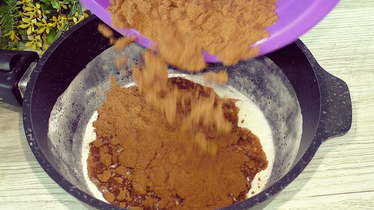 От черёмуховой муки торт имеет насыщенный коричневый цвет и пористую структуру.