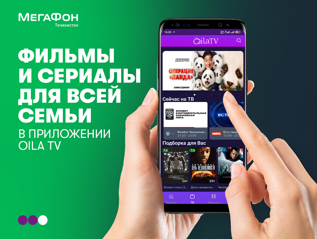 170 телеканалов, более 100 000 фильмов и сериалов «Oila TV» стали доступны абонентам компании «МегаФон Таджикистан». Интерфейс сервиса позволяет смотреть любимые передачи онлайн в удобное времяв удобном месте и использовать функцию записи нужных программ. Цена услуги – 1,30 сомони в день. Отличие «Oila TV» от других подобных сервисов – ориентация на зрителей из Таджикистана и других государств Центральной Азии. Контент подбирается с учётом их вкусов и включает как иностранную продукцию, так и фильмы и передачи, создаваемые в нашей стране. Интерфейс «Oila TV» доступен на двух языках – русском и таджикском. Смотреть контент «Oila TV» можно на телевизорах Smart TV, планшетах, смартфонах, через сайт http://oilatv.tj/web или мобильные приложения для Android и iOS. Пользователи получают доступ к широкому спектру телеканалов – можно выбрать новости, спорт, музыку, развлечения, детские программы. Каждый член семьи найдёт для себя что-то интересное. Есть функция напоминаний о важных матчах и пр