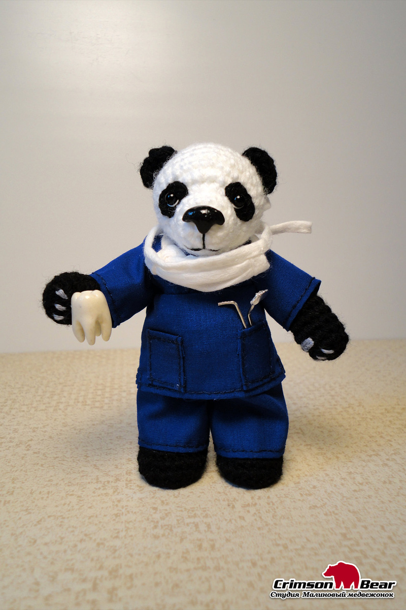 Размер 11 см. Подвижные лапы и голова. Повязка снимается. Зубик выполнен из пластики, размер 1,5 см.