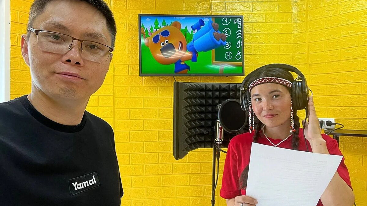 В Надыме на ненецкий язык перевели семь серий популярного детского мультфильма «Ми-ми-мишки». И это только начало! Супруги Илья Сэротэтто и Елена Неркагы из Надыма вместе с единомышленниками работали над проектом с 2023 года. – Сериал выбрали неслучайно. Во-первых, его очень любит наш сын, да и многие малыши, во-вторых, в нем не так много персонажей, а чем меньше, тем проще работать со звуком, — рассказывает Елена. — Нашли хорошо говорящих на ненецком людей из своего окружения, и вскоре герои заговорили голосами наших друзей Ксении Яр и Сюзанны Сэротэтто. Главную песню «Вместе по лесу идут, собирают шишки», знакомую, наверное, каждой современной маме, я спела сама. Озвученных серий — семь, священное число для ненцев. Проект получился благодаря гранту, сама работа заняла почти год. Сначала была защита в грантовом конкурсе, потом организационные мероприятия с создателями мультфильма (чтобы соблюсти все авторские права), далее — переводы диалогов с помощью знатоков ненецкого языка, знаком