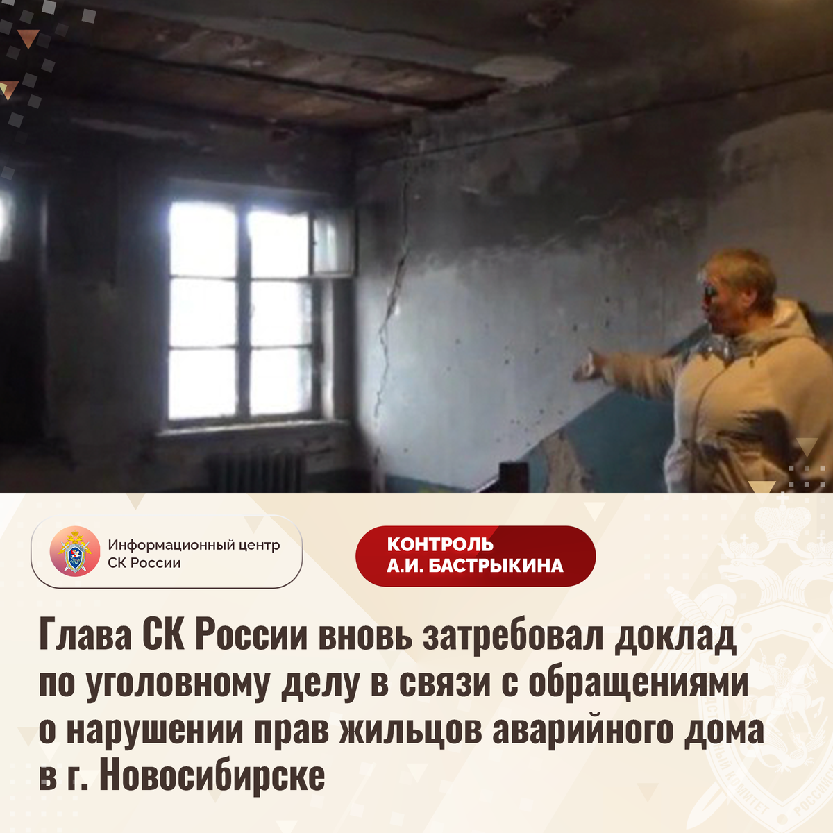 Глава СК России вновь затребовал доклад по уголовному делу в связи с обращениями о нарушении прав жильцов аварийного дома в г. Новосибирске