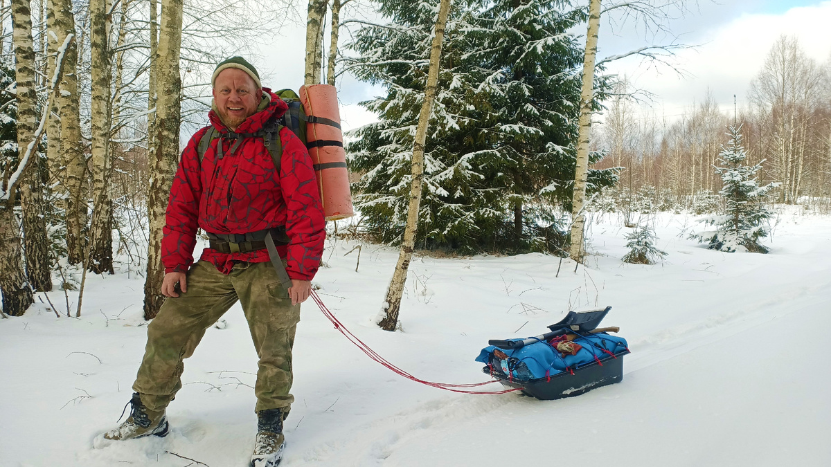 Зима в этом году выдалась бесснежная в центральной полосе России. Поэтому, при планировании нашего похода выходного дня с теплой ночевкой в палатке с печкой, мы допускали, что все снаряжение придется тащить на горбах в рюкзаках. Но за день накануне, снежка поднавалило. Поэтому, печь и палатку волокли в корыте.