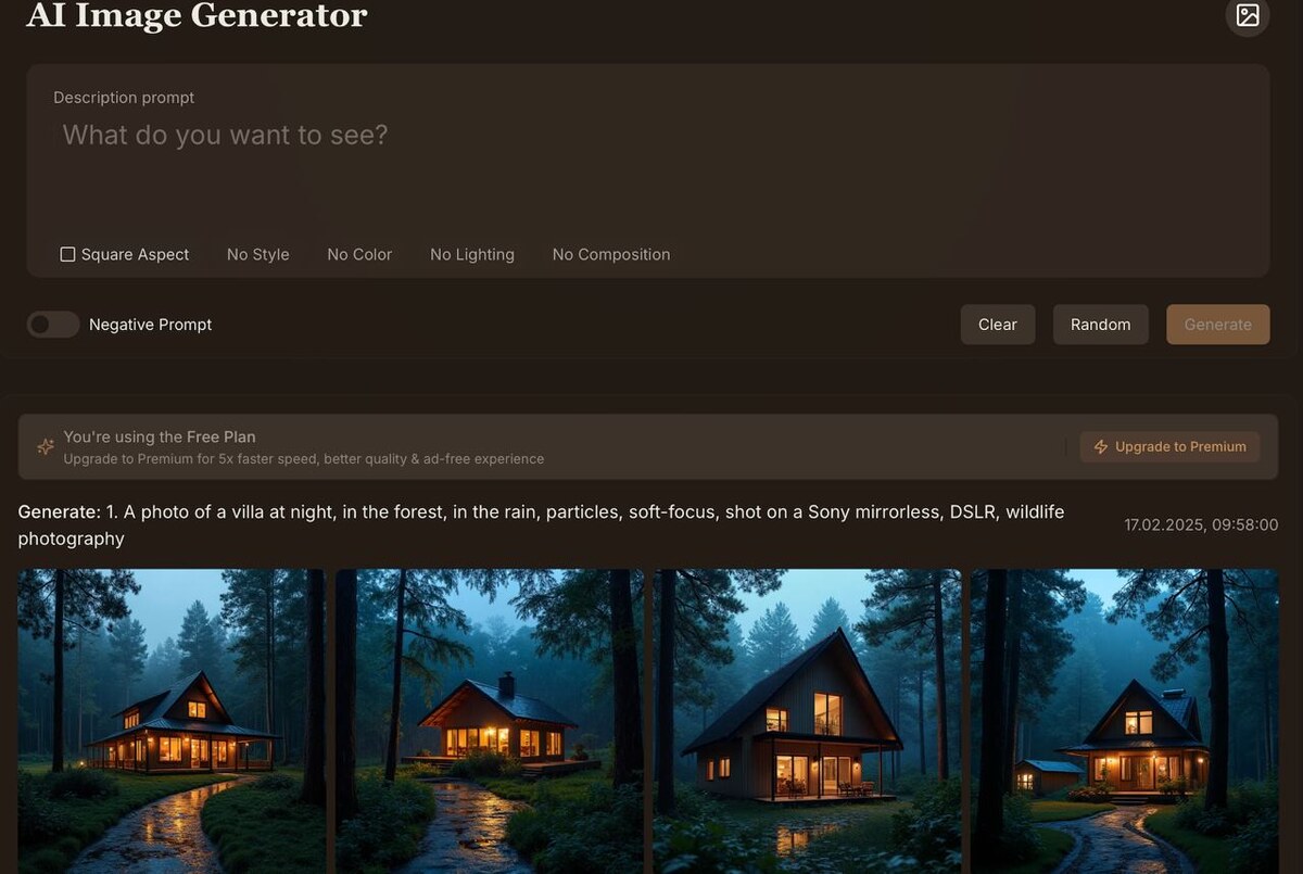 Он за пару минут создает реалистичные картинки без артефактов. Можно настраивать стили, цвета, освещение и композицию, добавлять свое фото как референс.