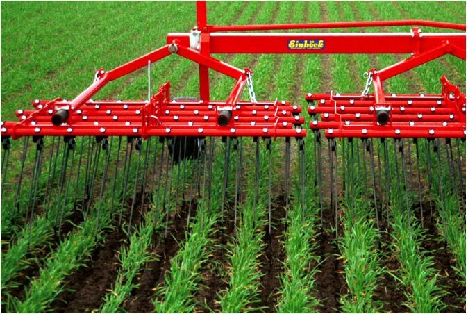 По всходам в таком случае используют штригельные (сетчатые) бороны. Это бороны легкого типа, зубья которых изготавливаются из проволоки d 6-8 мм, благодаря гибкости и щадящему режиму такой зуб может работать по всходам, не повреждая культурные растения, но, при этом, вычесывая сорняки с глубины до 2-3 см и разрушая почвенную корку.