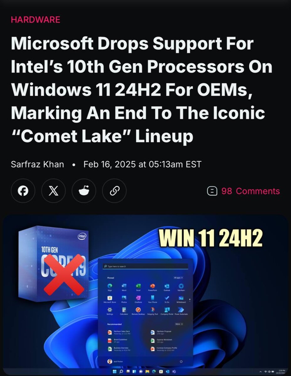 В мире технологий обновления операционных систем и оборудования — обычное дело. Однако последние новости от Microsoft могут вызвать бурную реакцию среди пользователей, имеющих компьютеры с процессорами Intel предыдущих поколений. Дело в том, что Windows 11, последняя версия операционной системы от Microsoft, больше не будет поддерживать некоторые модели процессоров Intel, включая популярные чипы 8-го, 9-го и 10-го поколений. Официальная позиция Microsoft На официальном сайте Microsoft и в документации к Windows 11 можно найти информацию о том, что система совместима только с процессорами Intel 12-го поколения и выше. Это означает, что пользователи, чьи компьютеры оснащены более ранними моделями процессоров Intel, не смогут официально установить Windows 11 или получать для нее обновления. Причины такого решения Microsoft объясняет свое решение необходимостью обеспечить максимальную производительность и безопасность системы. Современные процессоры Intel 12-го поколения и более новые