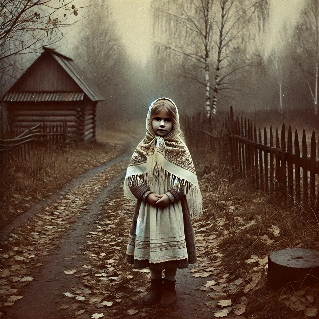 Поговаривают, что всё началось, когда семья Игнатьевых — простые такие, деревенские, папа Пётр, мама Ольга и бабушка Варвара — нашли у дороги девочку. Маленькую такую, лет девяти, может. Вся в пыли, босая, и одета как-то... ну, непонятно — вроде как старомодно, но с каким-то блестящим отливом, будто фольга на ней. И глаза у неё были... нет, вы только не смейтесь... серебристые. Ну, по слухам. Хотя кто знает, может, солнце так бликануло.