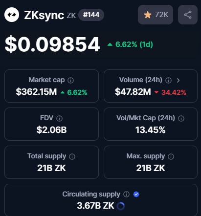 zkSync Era — это один из проектов второго уровня (Layer 2) для блокчейна Ethereum, который использует zk-rollups (нулевые доказательства свёртки) для масштабирования сети и увеличения её пропускной способности. zkSync использует два типа данных: Это позволяет обрабатывать тысячи транзакций, не нагружая основной блокчейн Ethereum. zkSync Era — это шаг к решению проблемы масштабируемости Ethereum. Это создаёт условия для ускоренного развития децентрализованных финансов (DeFi) и других приложений, а также позволяет значительно снизить стоимость транзакций, что делает Ethereum более доступным для пользователей по всему миру.