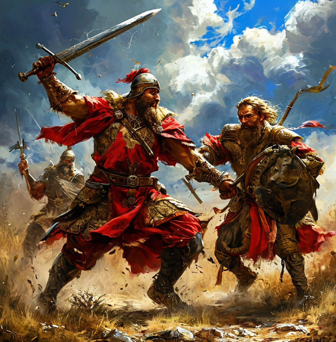 После победы над тьмой богатыри думали, что самое страшное позади. Но они ошибались. Лес, который они спасли, стал лишь началом новой истории. На этот раз их врагом был не просто Страх, а сам Черт — хитрый, коварный и знающий, как добраться до самых слабых мест каждого. Он появился однажды ночью, когда богатыри сидели у костра. Сначала они услышали смех — тихий, едва уловимый, как шелест листьев на ветру. Потом из тьмы вышел он: высокий, худой, с глазами, горящими, как угли, и улыбкой, которая обещала больше, чем можно было представить. — Ну что, богатыри, — сказал он, — думали, что справились? А я только начинаю. Иван сразу схватился за топор, но Черт лишь рассмеялся: — Ох, Иван, Иван... Ты всегда так прямолинеен. Но что, если я скажу тебе, что твоя сила — это иллюзия? Что ты никогда не был настоящим богатырем? Иван замер. Эти слова задели его за живое. Черт знал, как ударить точно в цель. — Не слушай его, — сказал Добрыня, но было уже поздно. Черт повернулся к Добрыне: —