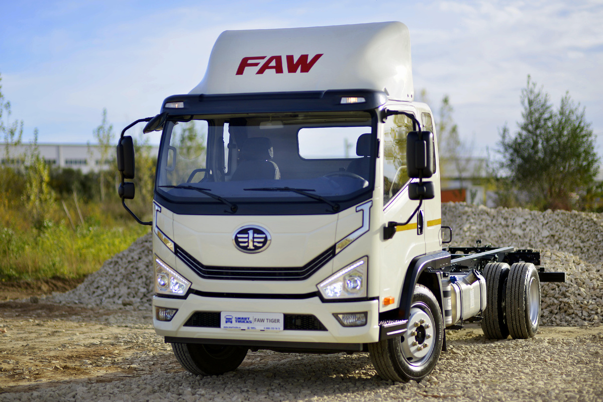 Модель шассиFAW Tiger 6G 9 ОСНОВНОЕ Колесная формула4 × 2 Тип кабины3-местная, со спальным местом МАССА И ГАБАРИТЫ АВТОМОБИЛЯ Технически допустимая полная масса, кг8900 Колесная база, мм3300/3900/4200/4700 Монтажная длина рамы, мм4059/5042/5314/6102 Задний свес шасси, мм1750/2135/2105/2395 Передний свес шасси, мм1155 Снаряженная масса шасси, кг3390…..3507 Ширина, мм2202 Высота, мм2400 Нагрузка на переднюю / заднюю ось, кг3300 / 6200 ДВИГАТЕЛЬ Модель FAW DE CA4DH1-16EV-30 (Евро 5)Количество цилиндров / расположение 4 / рядный Рабочий объем, см 33800 Мощность макс., кВт (л.с.) об/мин118 кВт/ (160 л.с.) /2500 Крутящий момент макс., Н∙м / об/мин500/1500 ТРАНСМИССИЯ МодельWANGLIYANG 6G55Тип / количество передач Механическая / 6 Сцепление Однодисковое Передаточное число оборотов коробки передач i1=6.198 i2=3.287 i3= 2.025 i4=1.371 i5=1 i6=0.78 ТОРМОЗНАЯ СИСТЕМА Тип Пневматические двухконтурные Передние и задние тормоза Барабанные ТОПЛИВНЫЙ БАК Емкость топливного бака, л200 ТИП ПОДВЕСКИ Пе