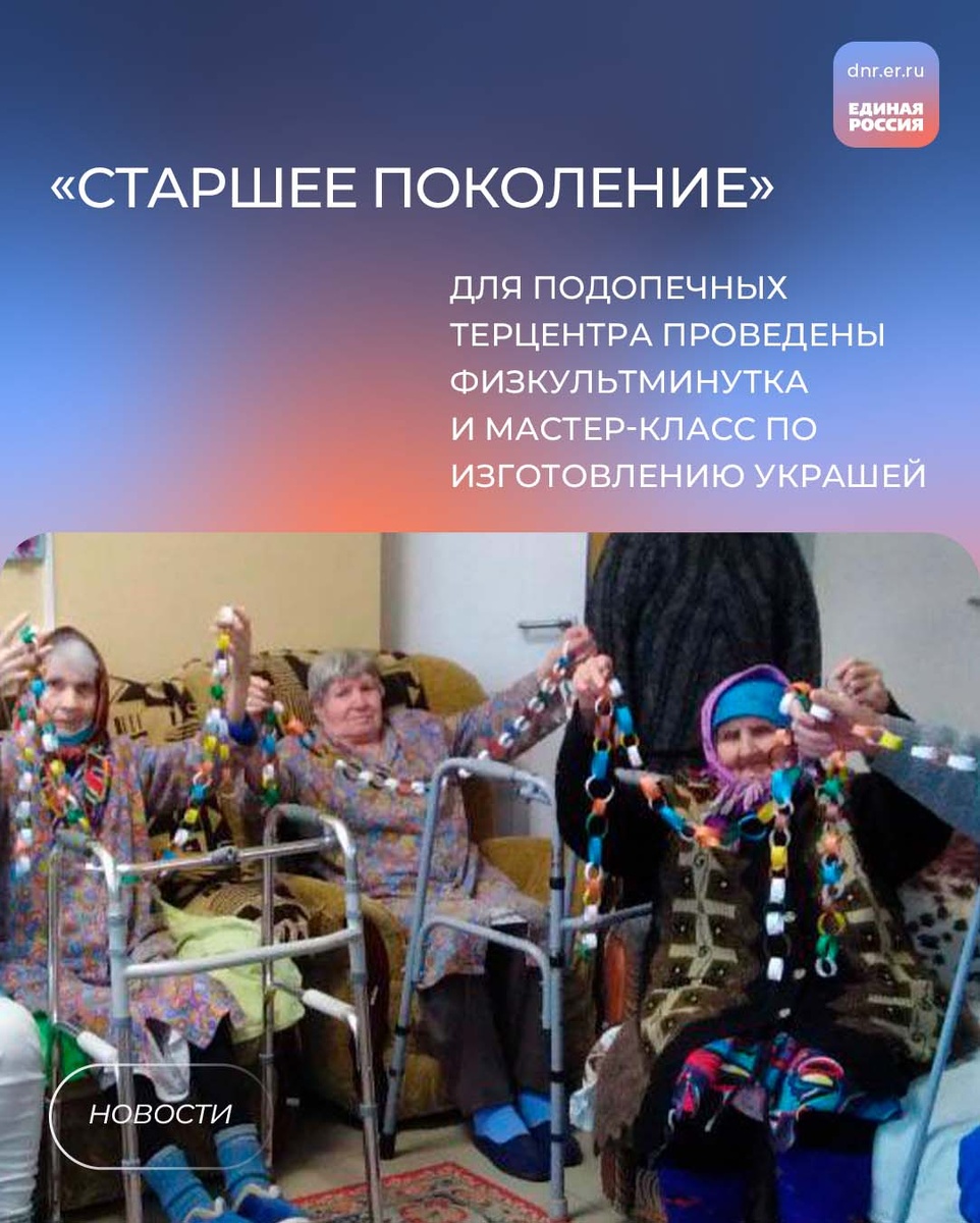 По партийному проекту Единой России «Старшее поколение» с подопечными стационарного отделения временного проживания граждан пожилого возраста и инвалидов № 1 терцентра г. Снежное была проведена физкультминутка и беседа «Основы здорового образа для пожилых». Сотрудники центра провели для подопечных мастер-класс по изготовлению праздничных украшений к 8 Марта, физкультминутку, беседу «Основы здорового образа жизни», а также развлекательную программу. «Очень приятно видеть, как с каждым мероприятием люди почтенного возраста становятся более активными и счастливыми. Физкультминутки, творческие мастер-классы и беседы о здоровье – это не просто полезные занятия, но и повод для общения, радости и поддержки. Мы всегда рады быть рядом, чтобы подарить немного внимания, тепла и вдохновения нашим уважаемым подопечным. Вместе мы делаем жизнь наших пожилых граждан ярче и насыщеннее!» – сказала секретарь первичного отделения Единой России № 799 Виктория Флус. #ЕРДНР #СтаршееПоколение #ЕдинаяРоссия