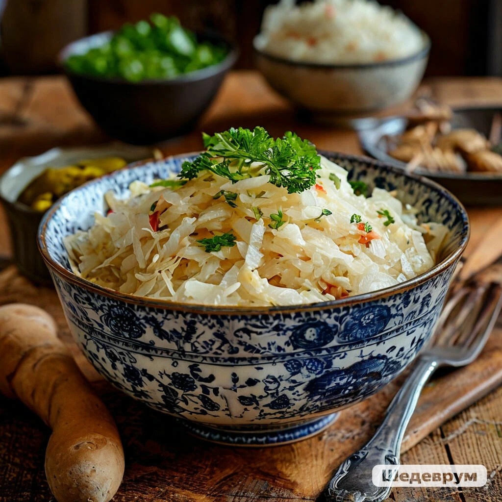 Квашеная капуста также является источником пробиотиков, которые способствуют здоровью кишечника и улучшают пищеварение.