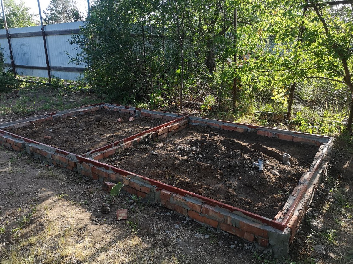 Фундамент для бани. Основание-это металлическая труба. Труба для полива лежала на участке и ее мы использовали для труб под основание фундамента. Получилось 13 отрезков по 70 см. Из выкопали в землю на поверхности оставили примерно 20-30 см. Залили их цементом. Далее металлическая квадратная труба по периметру сваренная между собой и приварена к трубам основания. Под трубу положили кирпичи в 2 ряда. Накидали землю во внутрь периметра (нужно будет еще накидать и утрамбовать). Выкопали яму под слив-переливную. Вывели трубу слива в яму. Следующий этап заливка пола бани. Для этого купили 2 мешка цемента М500 по 59 кг, щебень и песок. Остаток щебня и песка пригодится для облагораживания участка и для дорожек. Сколько было потрачено на на фундамент: металлические трубы ( квадратные) +песок и цемент для колонн-3500 руб. -кирпичи были -труба основания для колонн -была. (труба металическая для полива старая) -щебень и песок +доставка-7900 руб. (много песка и щебня осталось) -труба под сли