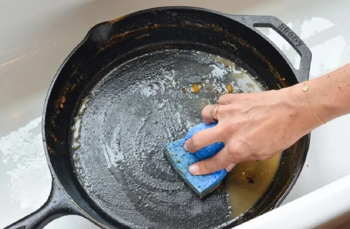 Это самое ответственное дело, так как такие сковороды царапаются от каждого неловкого прикосновения. Поэтому скрести их абразивами и железными мочалками нельзя.