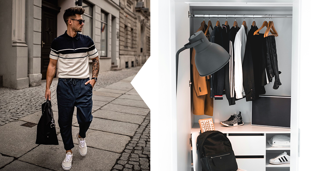 Начинать всегда стоит с основ, в данном случае речь идет о подборе базового гардероба. Он должен сочетать в себе универсальные вещи из мира спорта и повседневной жизни, которые будут легко комбинироваться между собой. Начни с классических белых и черных футболок и поло, которые станут основой для множества образов. Добавь в гардероб темные джинсы и несколько пар брюк, например чиносы или карго.