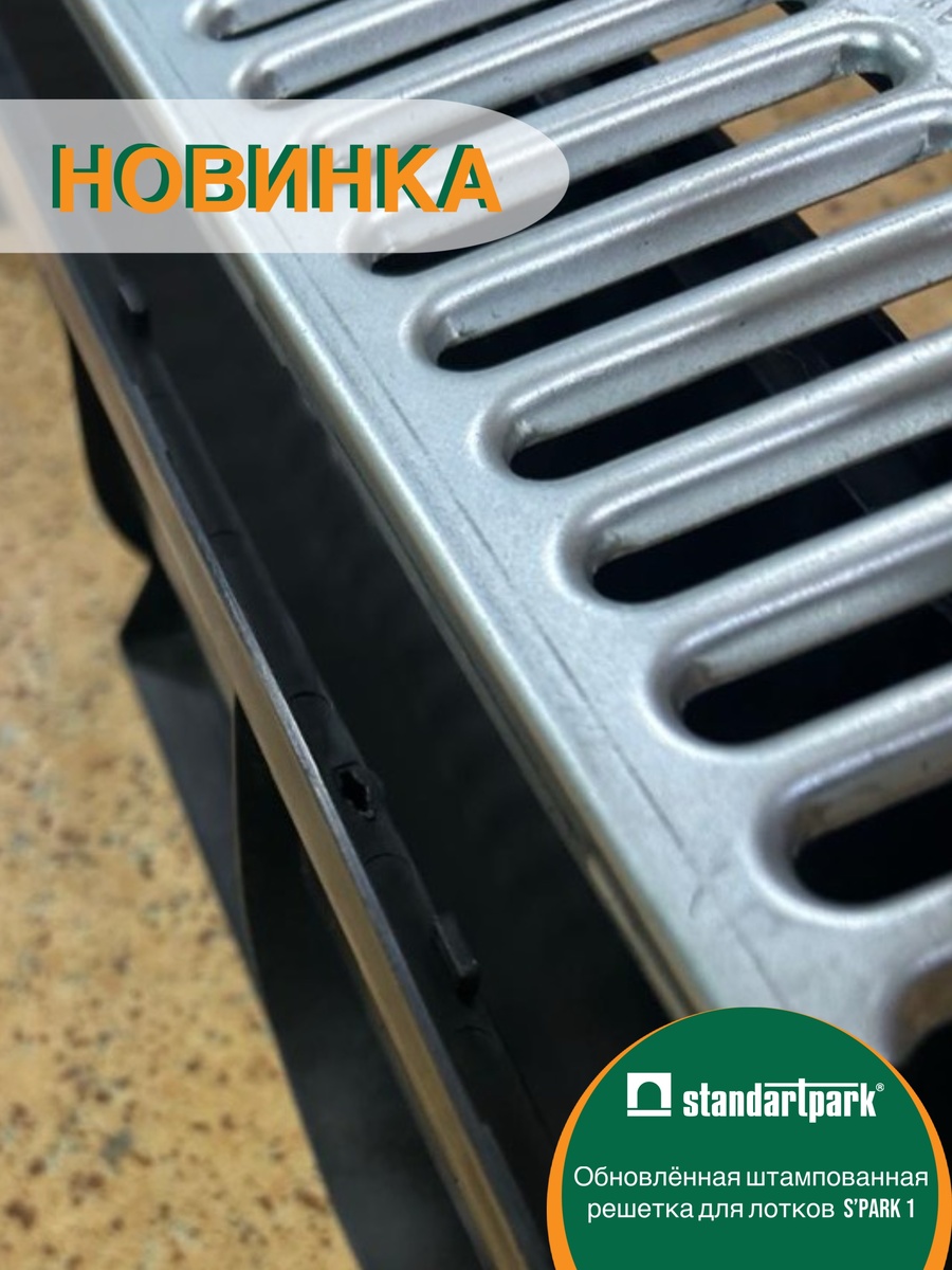 К новому сезону мы усовершенствовали оцинкованную решетку для пластикового лотка S’Park 1. Изменения в конструктиве позволили увеличить площадь водозабороных щелей до 22,5 кв.см и повысить устойчивость к динамическим нагрузкам. Также, оцинкованная решетка достаточно проста в монтаже и обслуживании за счет крепления к лотку при помощи защелок, встроенных в конструкцию изделий. Приобрести комплект S’Park 1 с оцинкованной решеткой уже можно найти на наших сайтах standartpark (ru, by, kz, uz).