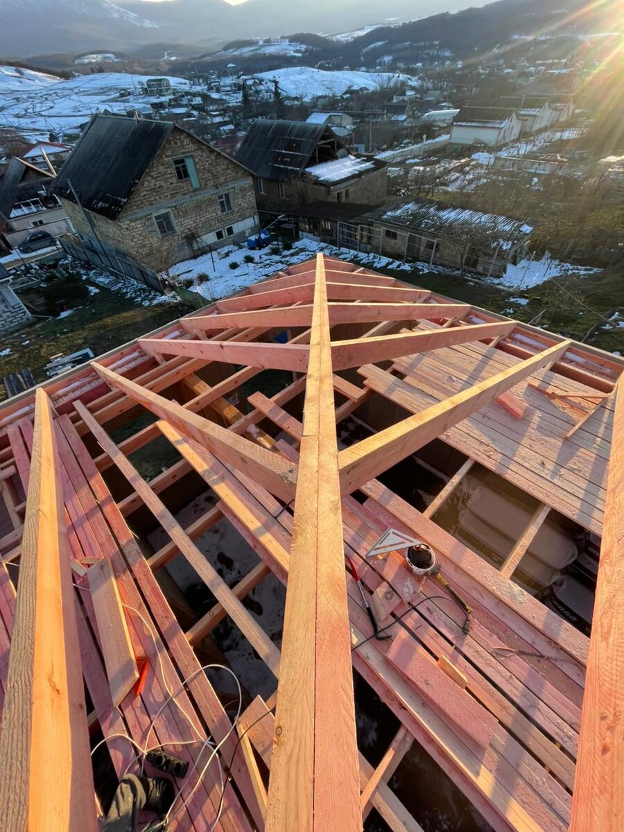 Добрый день, друзья! Погода внесла небольшие коррективы, но мы продолжаем кровельные работы в Крыму, а с Голубинка. На фото и видео монтаж потолочных балок и стропильной системы, утепление будет по потолочным балкам в 150 мм, в Крыму и Севастополе это более чем достаточно. Как всегда можно посмотреть этот объект и сделать расчет стоимости. +79782617393
