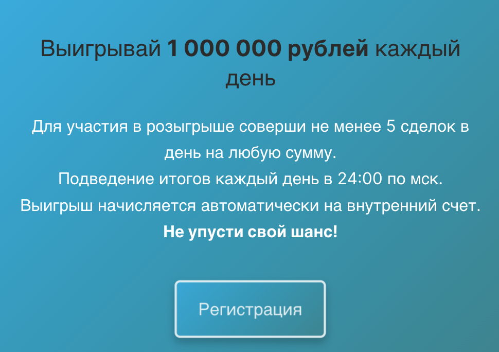 - Соверши всего 5 сделок на любую сумму, и ты автоматически попадешь в список участников розыгрыша.