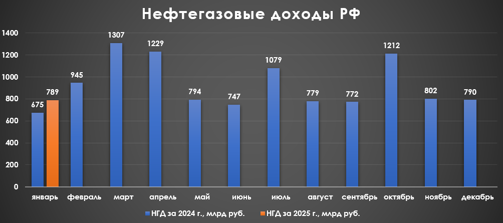 Нефтегазовые доходы в январе 2025 г. — ощутимый прирост. По году весомый плюс за счёт ослабления рубля, роста цены на Urals и налогов