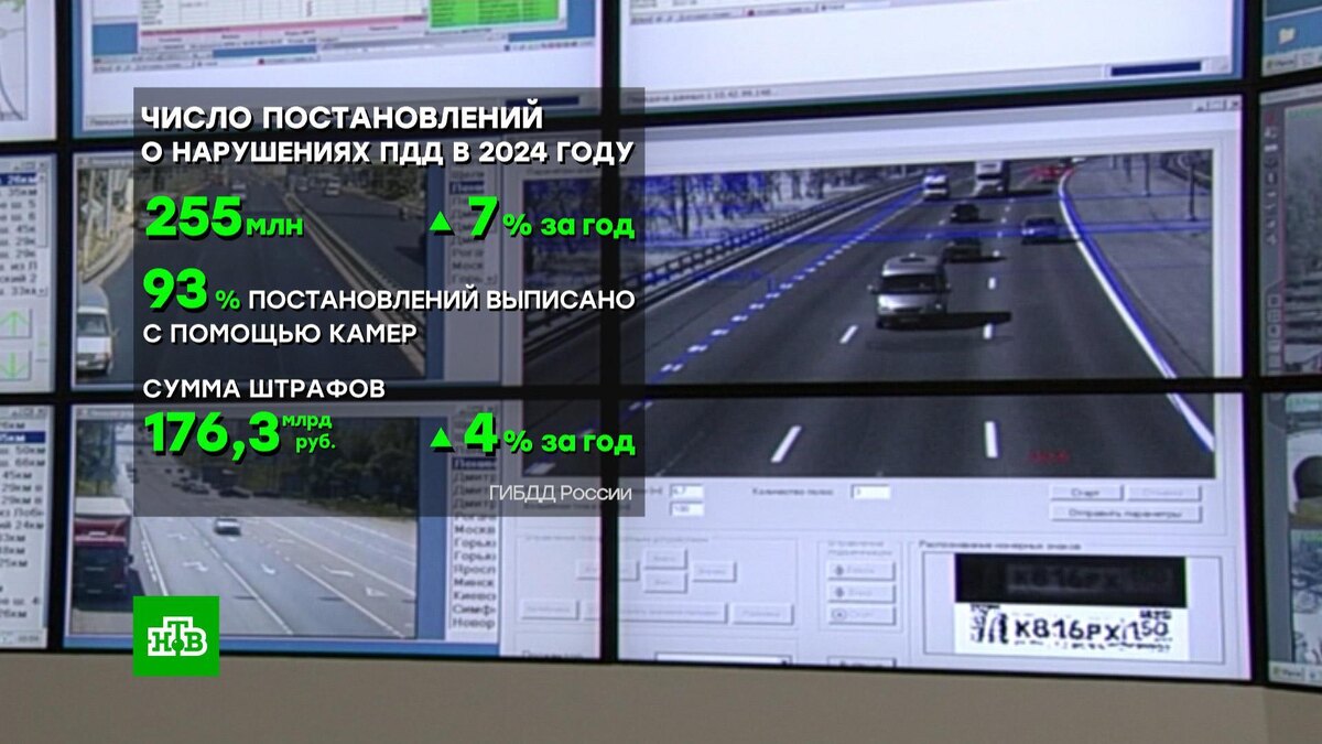 [ Смотреть видео на сайте НТВ ] Общая сумма штрафов за нарушения ПДД в прошлом году превысила 176 млрд рублей. Большая часть постановлений оформлена с помощью камер. В прошлом году сотрудники ГИБДД выписали больше 255 млн постановлений о нарушениях правил дорожного движения. Статистику ведомства приводит газета «Коммерсант». Из них примерно 237 млн, то есть 93%, оформлены с помощью дорожных камер, когда владельцу машины приходит «письмо счастья». За прошлый год число таких писем выросло всего на 7%, в то время как по итогам 2023 года рост был в 20%. Причина в том, что осенью прошлого года провели реформу систем фотовидеофиксации. Если проще: власти ужесточили контроль за тем, куда можно устанавливать камеры. Некоторые из них по требованию ГИБДД отключили или убрали. [ Смотреть видео на сайте НТВ ]
