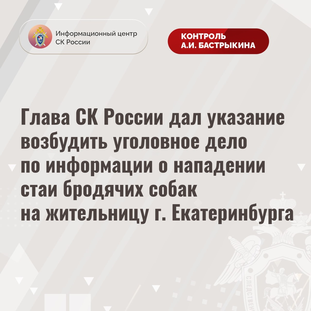 Глава СК России дал указание возбудить уголовное дело по информации о нападении стаи бродячих собак на жительницу г. Екатеринбурга