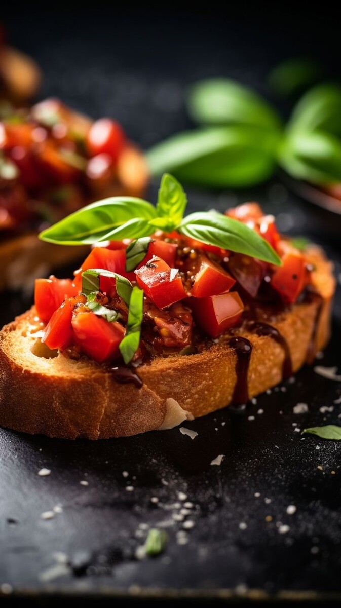 Закуска — это неотъемлемая часть праздничного стола. Ведь именно она подчёркивает и дополняет вкус ваших основных блюд и повышает аппетит. Брускетта это бутерброд, его снова подрумяненные чиабатта или багет с хрустящей корочкой. А начинка может быть практически любая, существуют сотни рецептов и вариантов. Самый распространённый и удобоваримый вариант — брускетта с помидорами. Почему именно она? Потому что: * гости могут легко перекусить, но не переесть перед подачей основного блюда * быстро и легко готовится * подходит для праздничного стола как в зимнее так и в летнее время * подходит к основному блюду как из рыбы так и из мяса. Для одной порции брускетты с помидорами нам понадобятся: Хлеб — чиабатта или багет 1 кусок. Чеснок — 1 зуб. Оливковое масло — 2 ст.л. Помидор - 30 гр. Соль — по вкусу Перец — по вкусу Зелень - подойдут петрушка, кинза, базилик. Хлеб нарезаем ломтиками, толщиной не более двух сантиметров. Горбушку не используем. Затем поджарим хлеб с двух сторон до золотисто