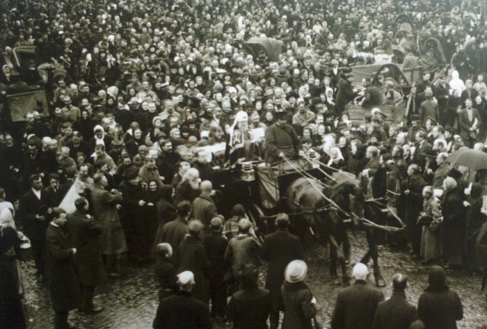 Торжественно и величественно, твердой походкой входил Святейший Тихон в храм и возносился духом к высшему, горнему. В быту похожий на провинциального попика, на богослужении он преображался, становился Великим Господином, Молитвенным Светочем, Печальником и Водителем Русской Церкви. Словно Господь в день Своего Преображения. Как и в 1918 году, в 1919-м патриарх почти ежедневно совершал богослужения в храмах. Если в течение нескольких дней он не появлялся ни в одной из московских церквей, то все уже догадывались – опять Святейшего посадили под арест. Не разрешали ему комиссары отлучаться и в другие города, напуганные торжественными встречами патриарха в июне 1918 года в Петрограде и в сентябре в Ярославле и Ростове Великом. Новые революционные праздники, хотя и отличались грандиозными денежными тратами, удручали своей искусственностью, так как участвовавшие в них красноармейцы и советские служащие шли в эти дни на принудительные митинги и демонстрации. На фоне безликих коммунистических