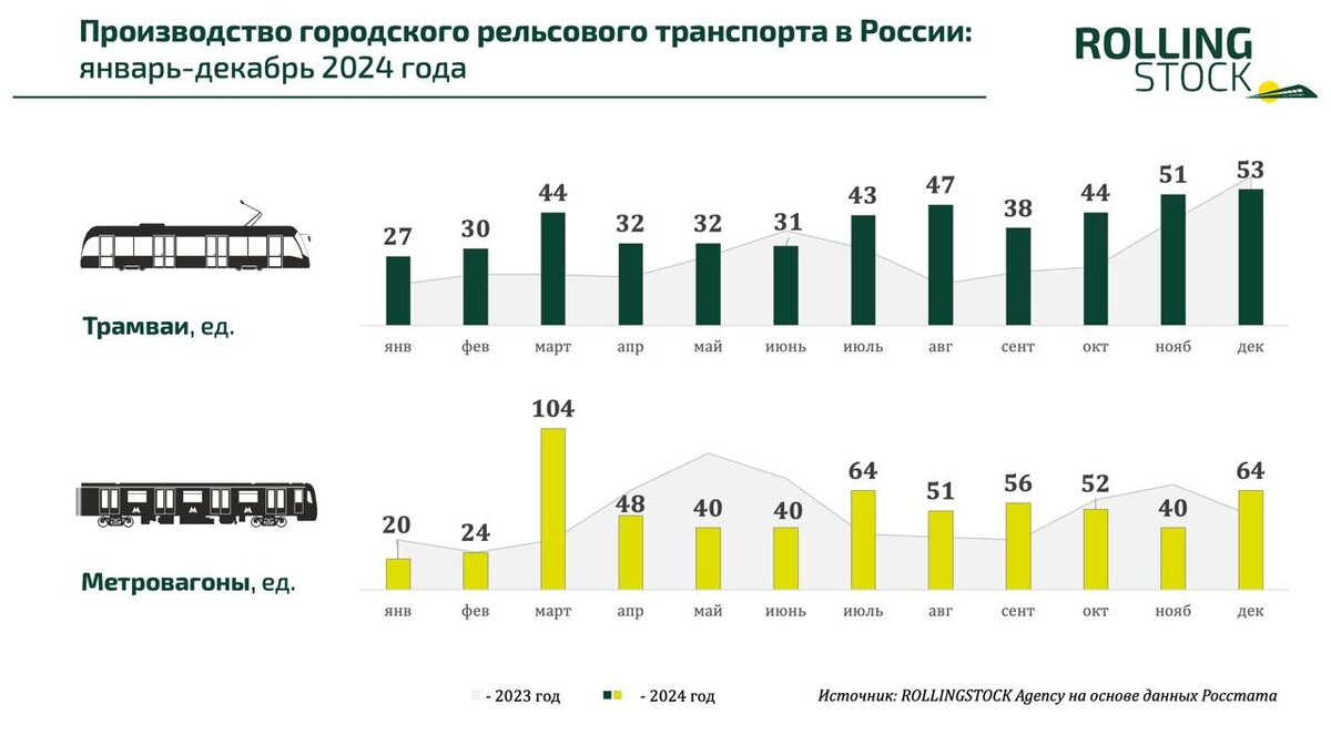 Производство городского рельсового транспорта в России: официальные итоги-2024
