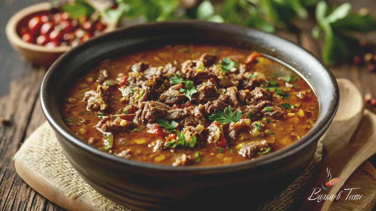 Суп Харчо (Грузинский мясной суп с орехами и пряностями)
